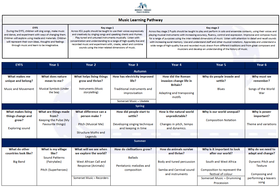 This learning pathway demonstrates the music curriculum as it progresses through the school.